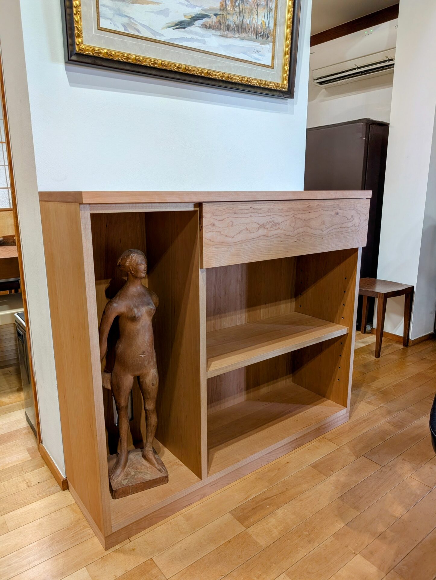 彫刻を飾るスペースを設けた、世界に一つの特注棚。