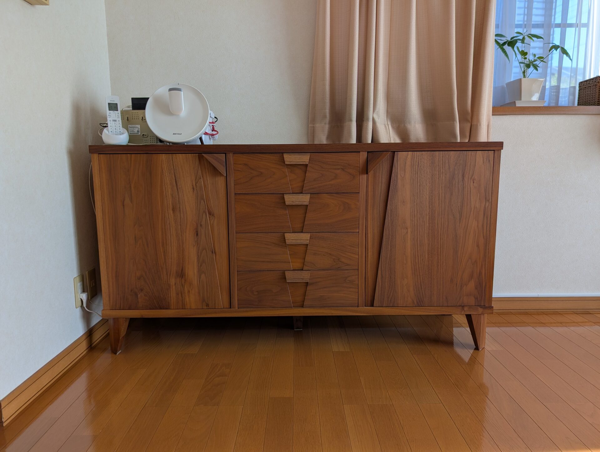 無垢材を贅沢に使用した唯一無二のリビングボード。土井木工ならではのフィンガージョイントや蟻組接ぎなど、随所に取り入れております。取っ手も無垢材を使用し、職人が手仕事でくみ上げるリビングボードは耐久性に優れ、長くご使用いただけます。