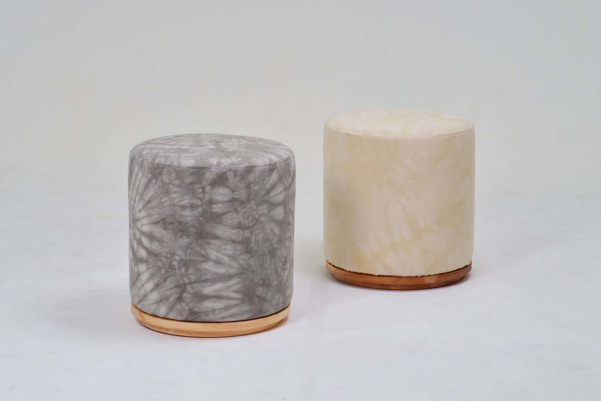 ヒノキの葉っぱを染料とし帆布に染めたスツールとコンパクトソファ