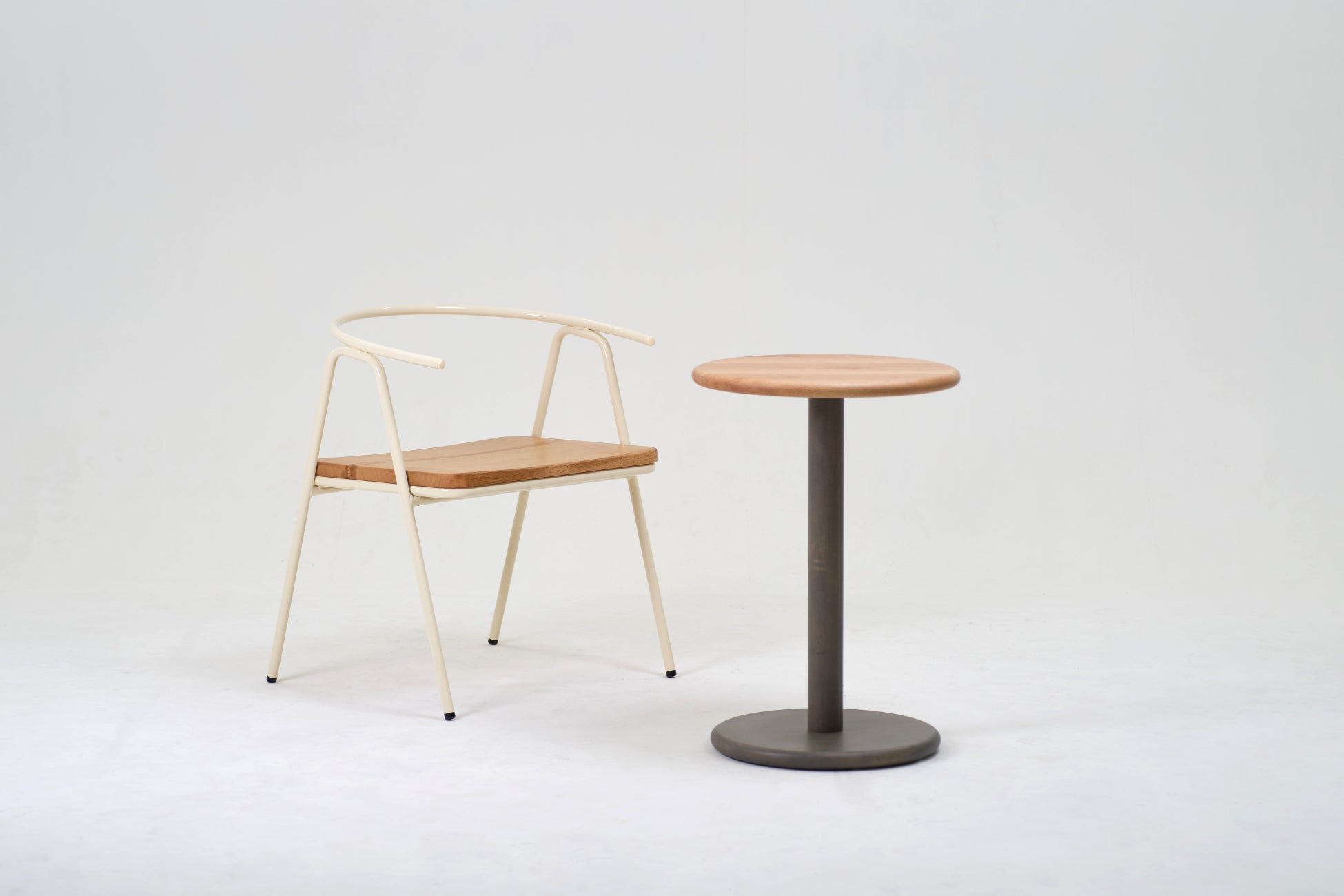 フレームを異素材にすることですっきりとした印象となり、座面は存在感のあるデザインにしました。