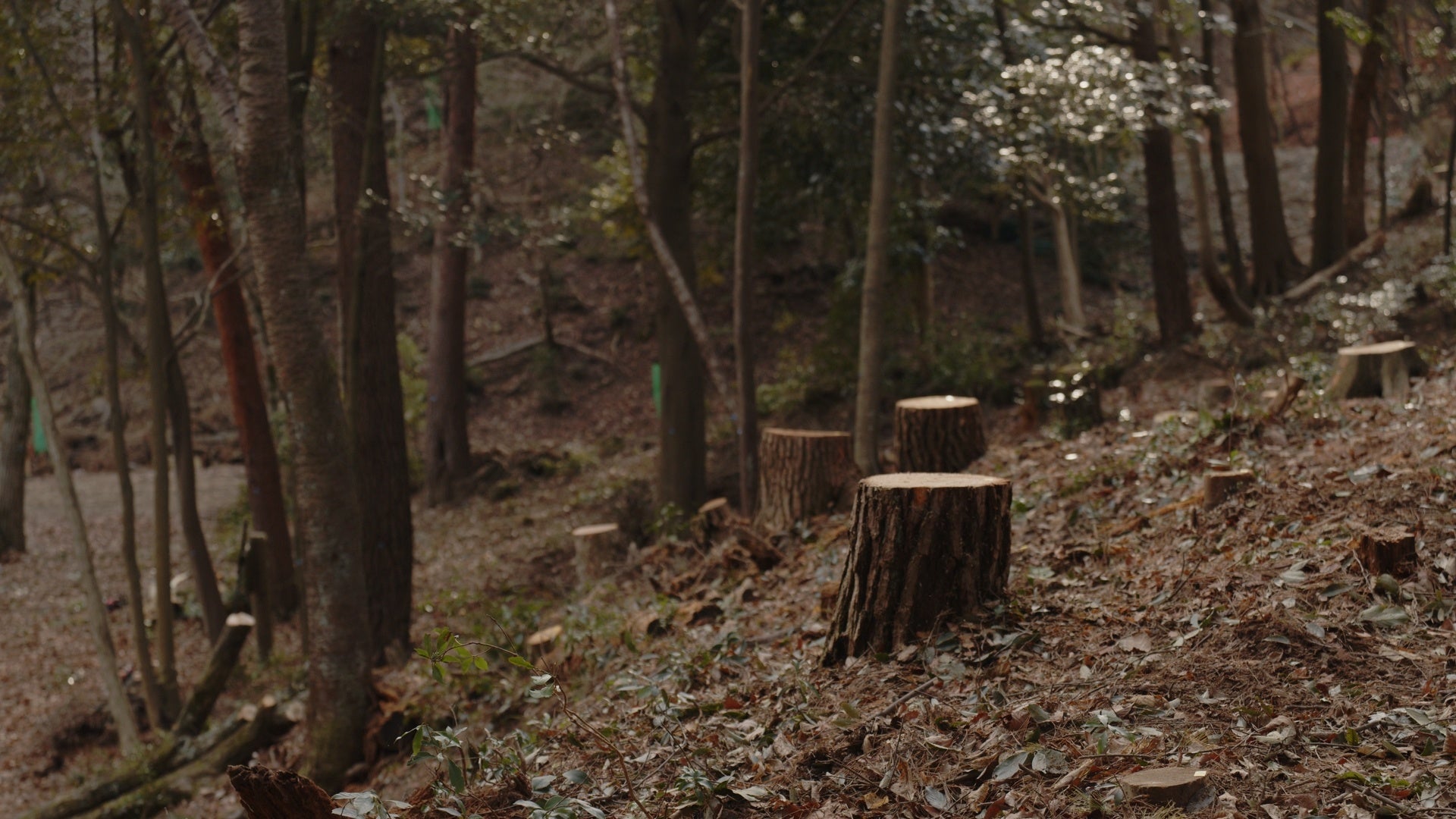 手入れ不足により成長しすぎた里山は病虫害による枯れ木が増加しており、