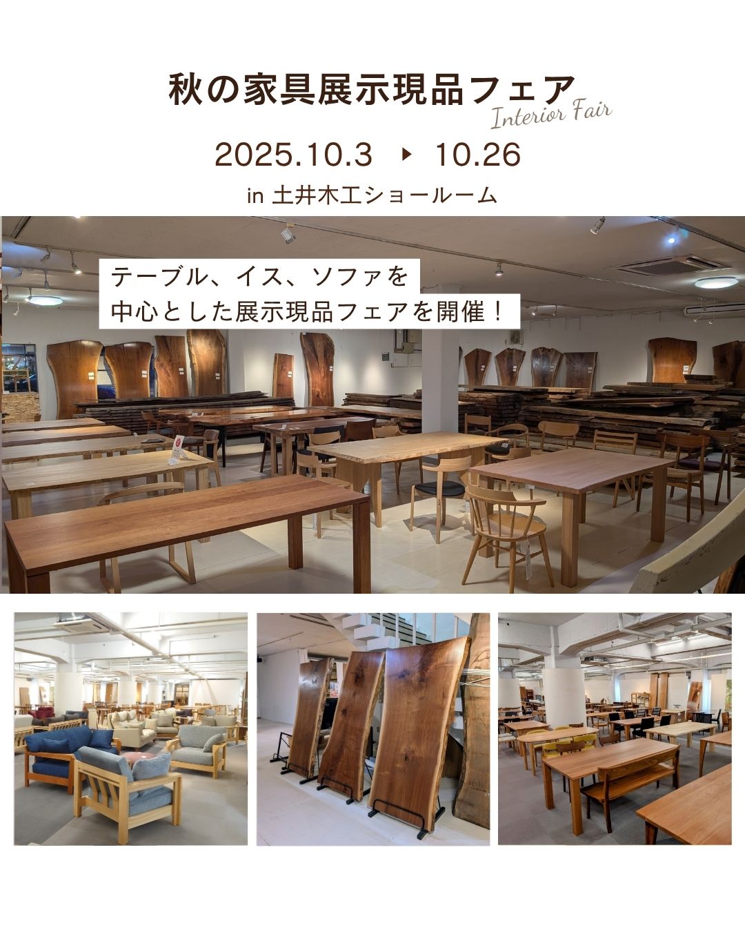 2025.10.042025年10月4日(土)〜10月26日(日)の期間、当店ショールームにて [秋の家具展示現品フェア」 を開催いたします。