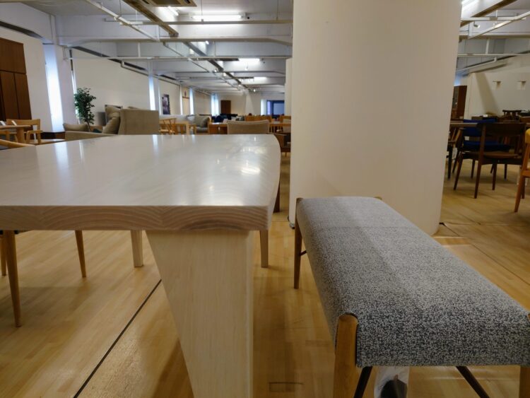 当ショールームでは自社製品はじめ、他にない独自性の高いアイテムをセレクトしております。ただやみくもに展示を揃えてはおりません。メーカーならではの特徴的なテーブル、ソファも揃えております。府中家具という産地で、タンス作りから始めた土井木工ですが、技術を活かしながらダイニングテーブル、ウッドフレームソファなど作成しております。また全国有名家具も一部取り扱っております。他とは違うテーブル・椅子・ソファなど揃当っておりますのでぜひ、一度ご来場のほど何卒よろしくお願い申し上げます。